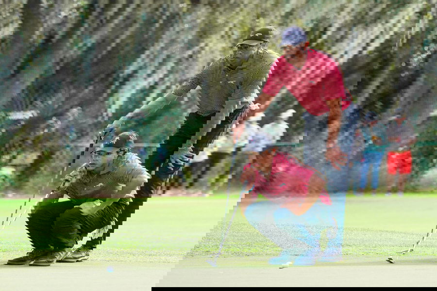 December 22, 2024, Orlando, Florida, USA: Tiger Woods R and Charlie Woods line up a putt on the 9th green during the final round of the PNC Championship at the Ritz-Carlton Golf Club. Orlando USA – ZUMAw109 20241222_fap_w109_015 Copyright: xDebbyxWongx